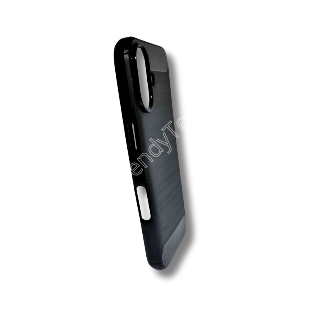 Tartós és ütésálló gumiból készült tok. Megemelt szélei védik a kijelzőt. Hátoldalán egyedi karbon és csiszolt alumínium minta. A készülék vezeték nélküli töltéséhez nem kell eltávolítani.