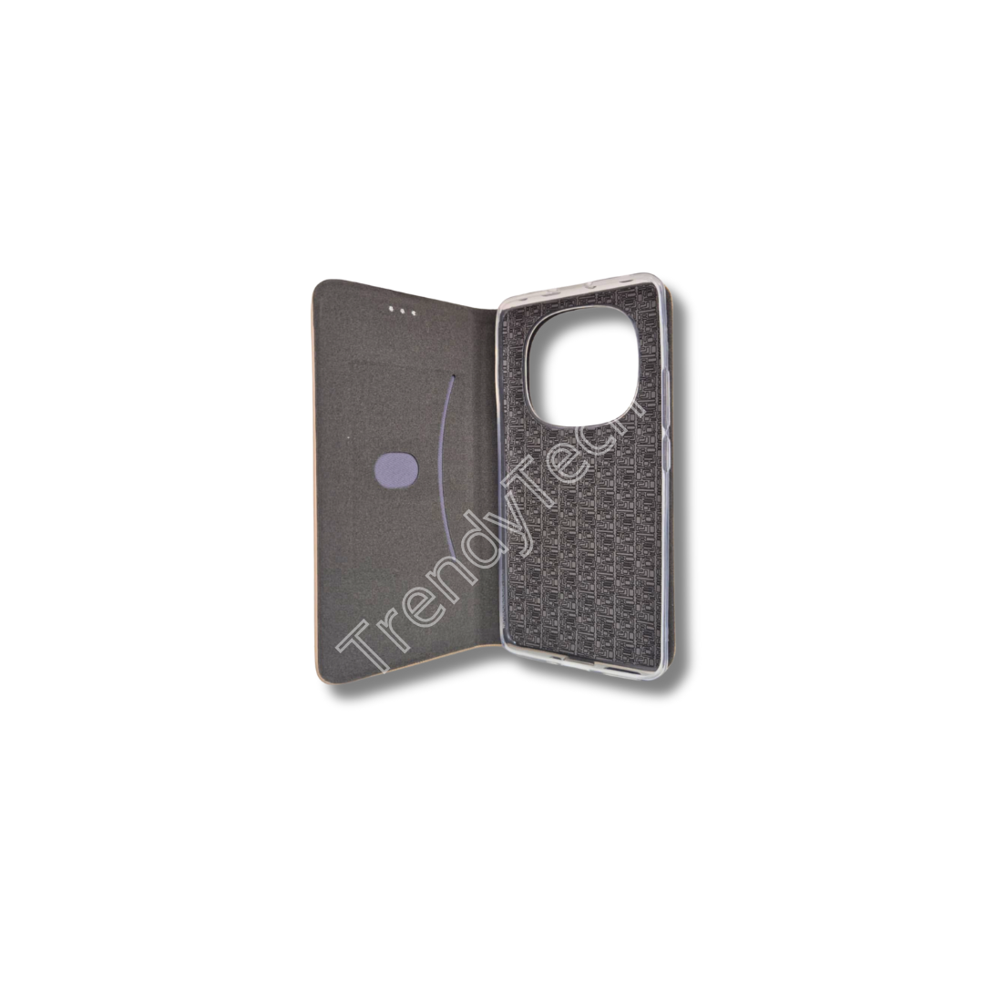 Szövet és műbőr textúrájú oldalra nyíló tok. Mágnesesen záródó. Egy bankkártya tartó zsebbel.