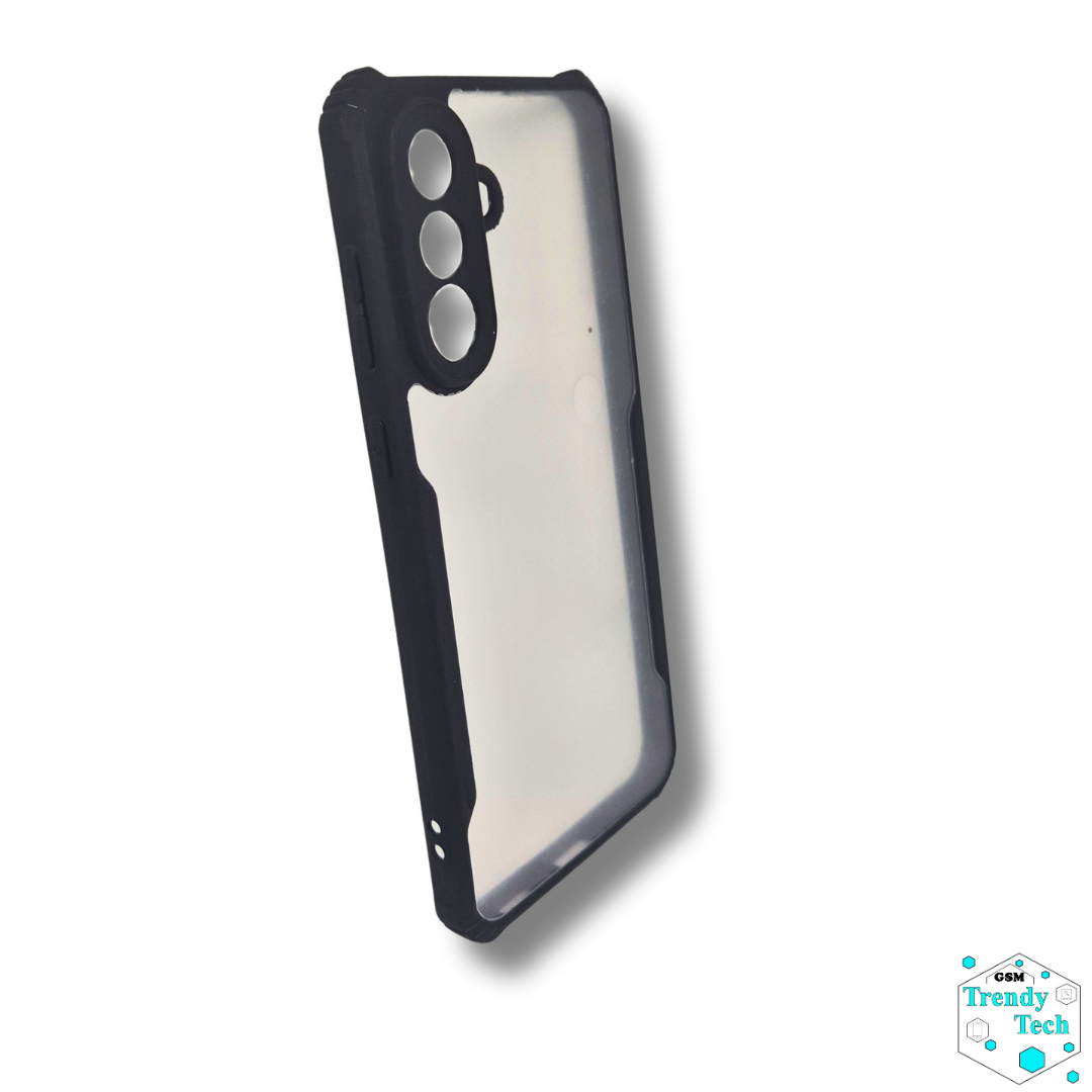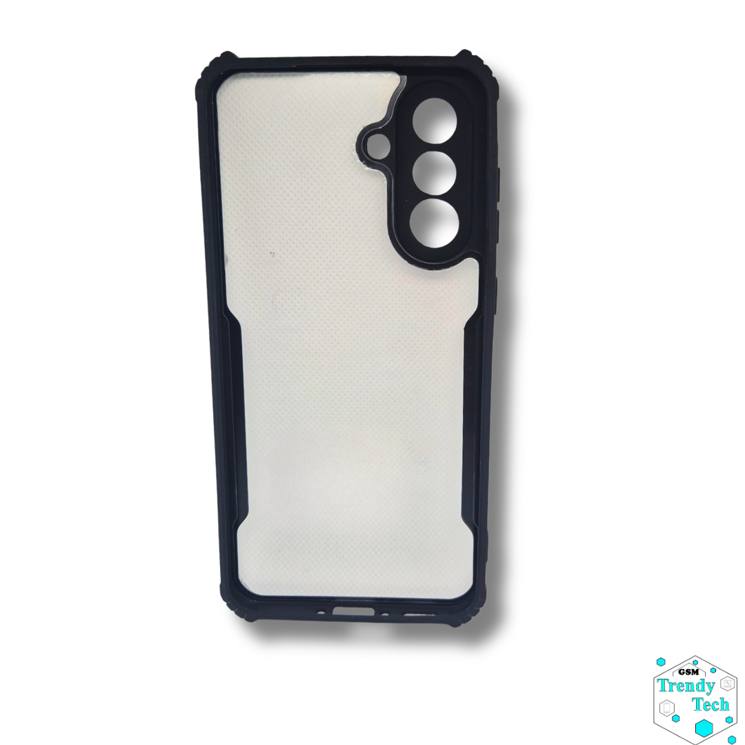 Erősített sarkokkal és merev hátlappal rendelkező tok. Átlátszó,