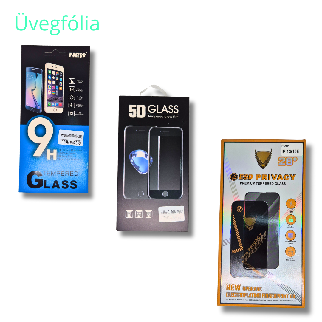 Teli kijelzős üvegfóliát, mely fekete kerettel van ellátva, így teljesen lefedi a kijelzőt.