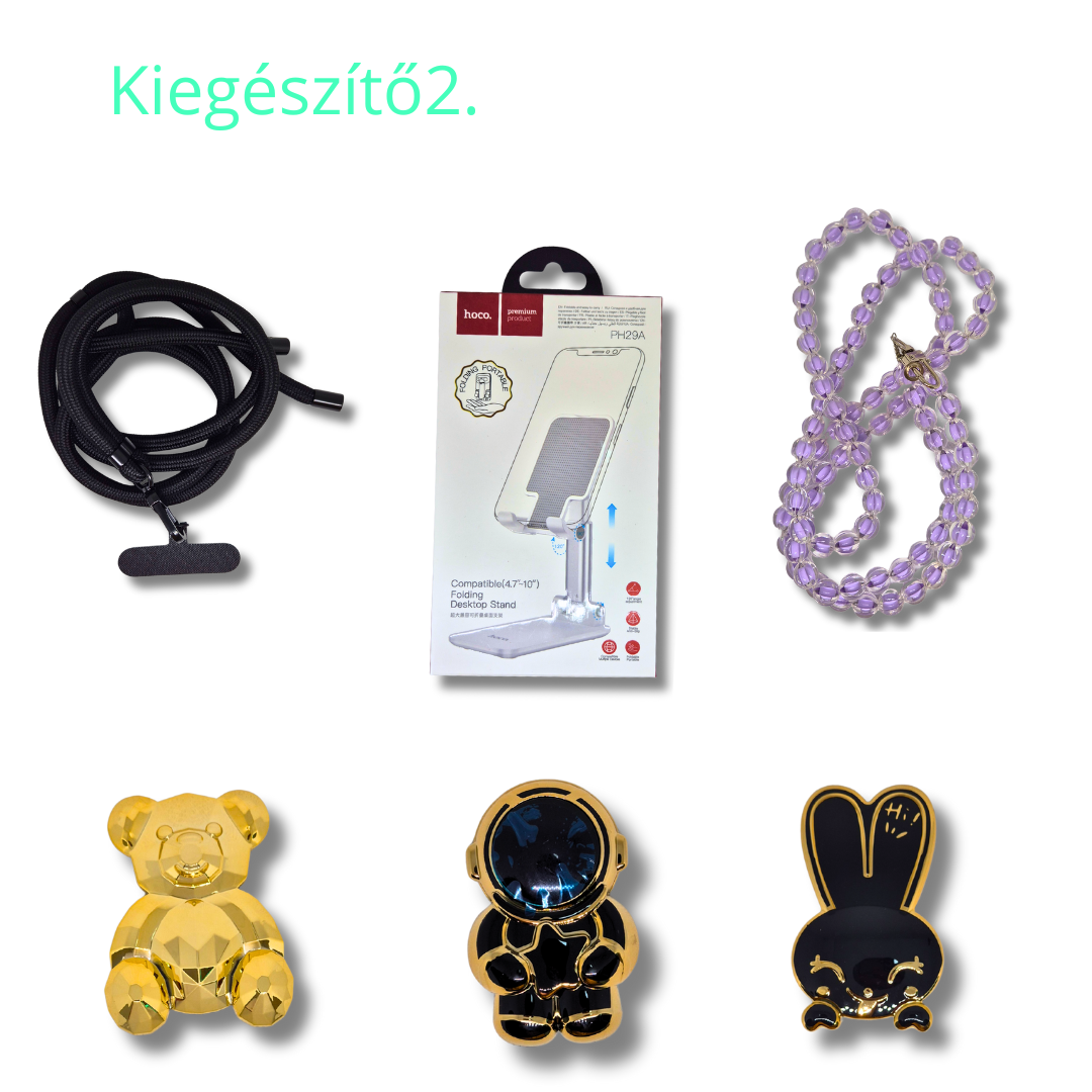 Felragasztható telefon kitámasztó: arany maci, fekete asztronauta, fekete nyuszi.